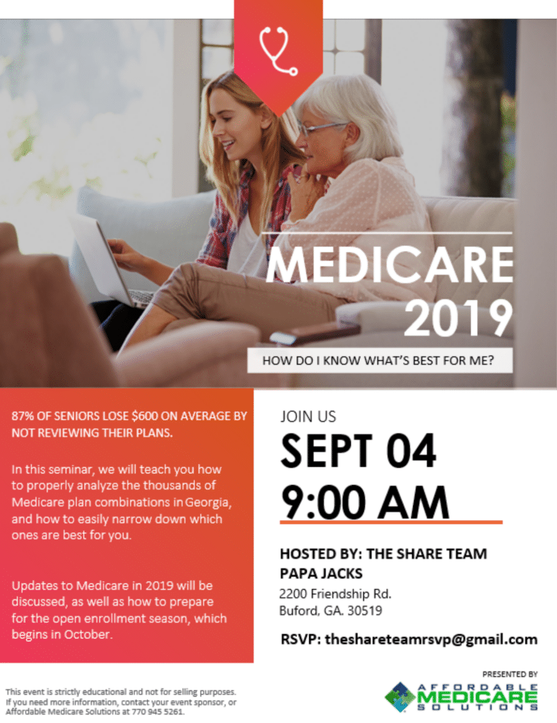 Join Us For A Seminar ~ Medicare 2019 ~ How Do I Know What’s Best For Me?