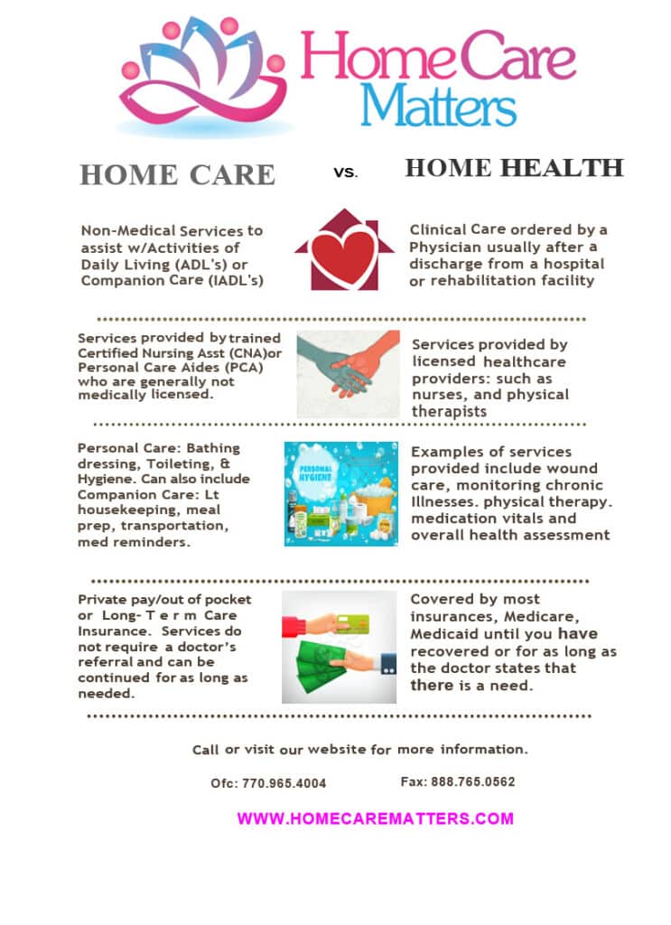 Ever wonder what the difference is between Home Care and Home Health? Here’s a quick guide to help you differentiate between the two.
